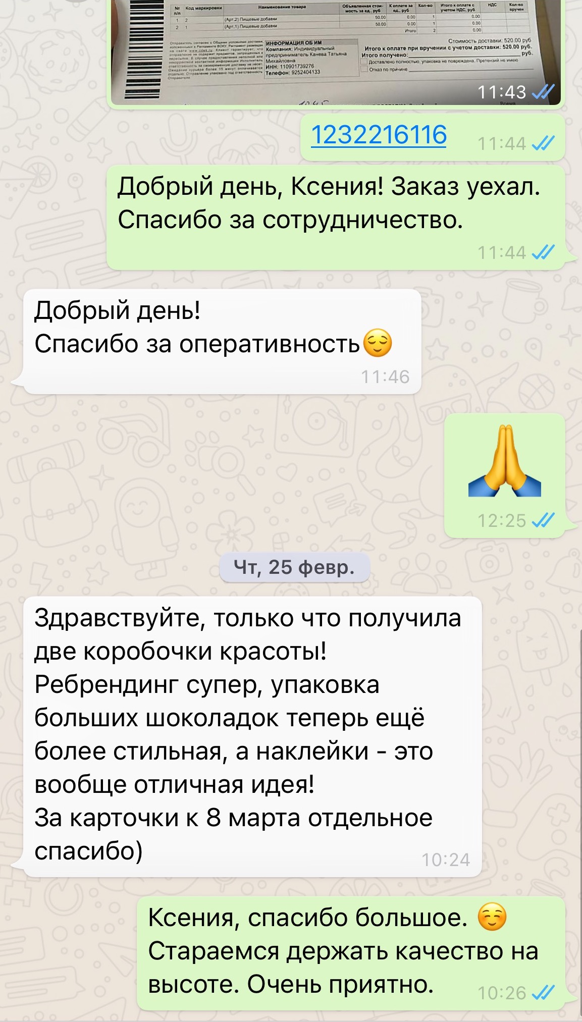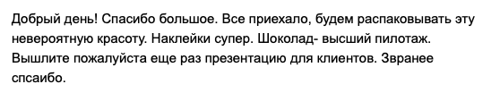 Спасибо за заказ